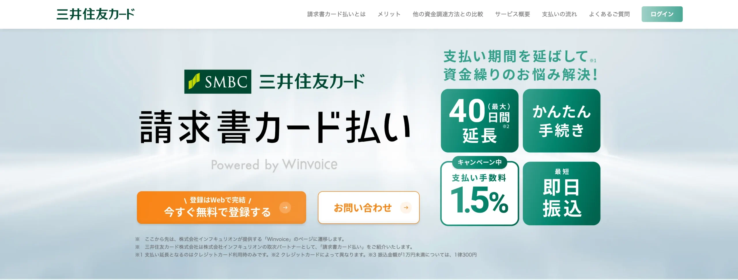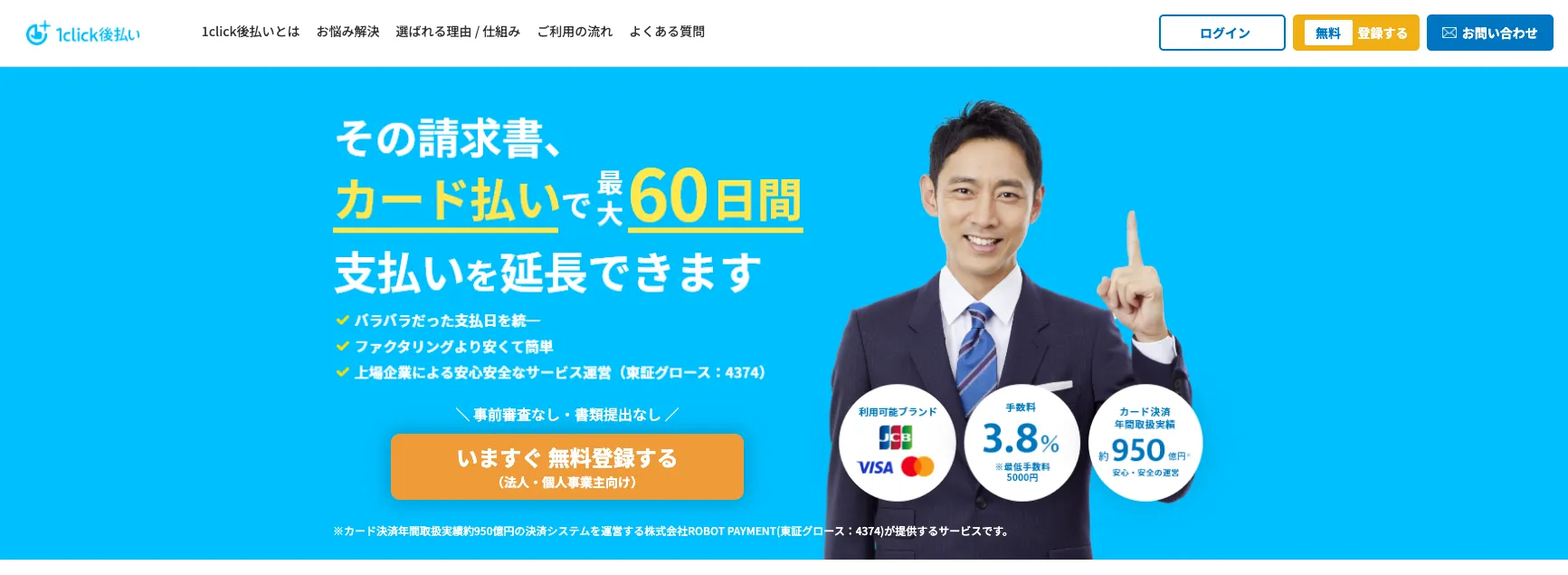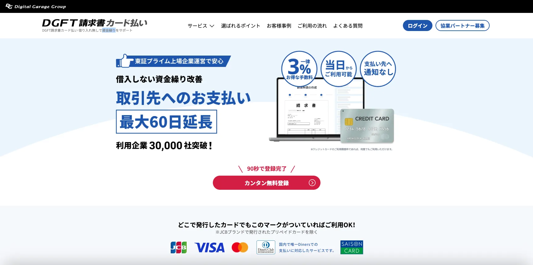 請求書カード払いは、取引先への支払いを最大60日間延長できる便利なサービスです。