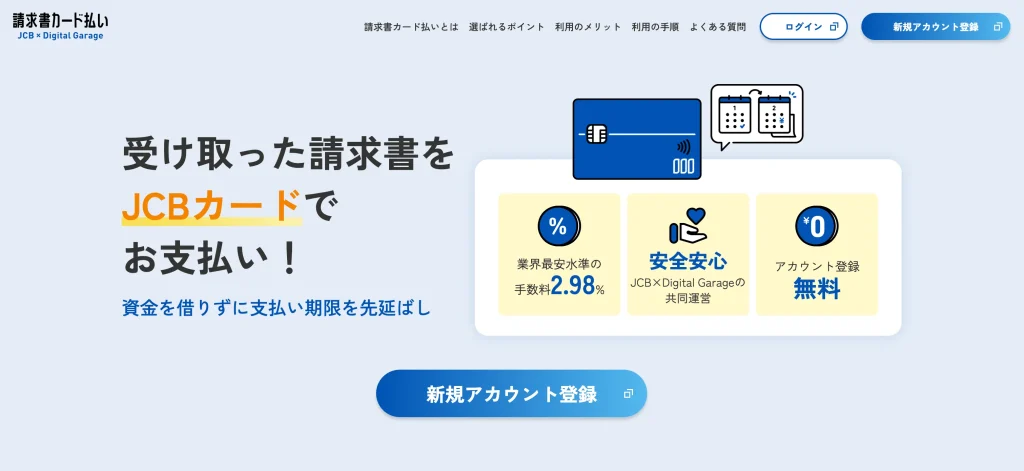 JCBカード専用の請求書カード払いサービスとして、JCB請求書カード払いがあります。