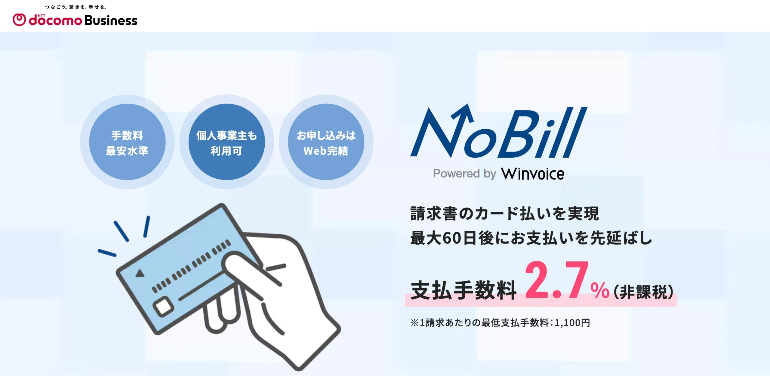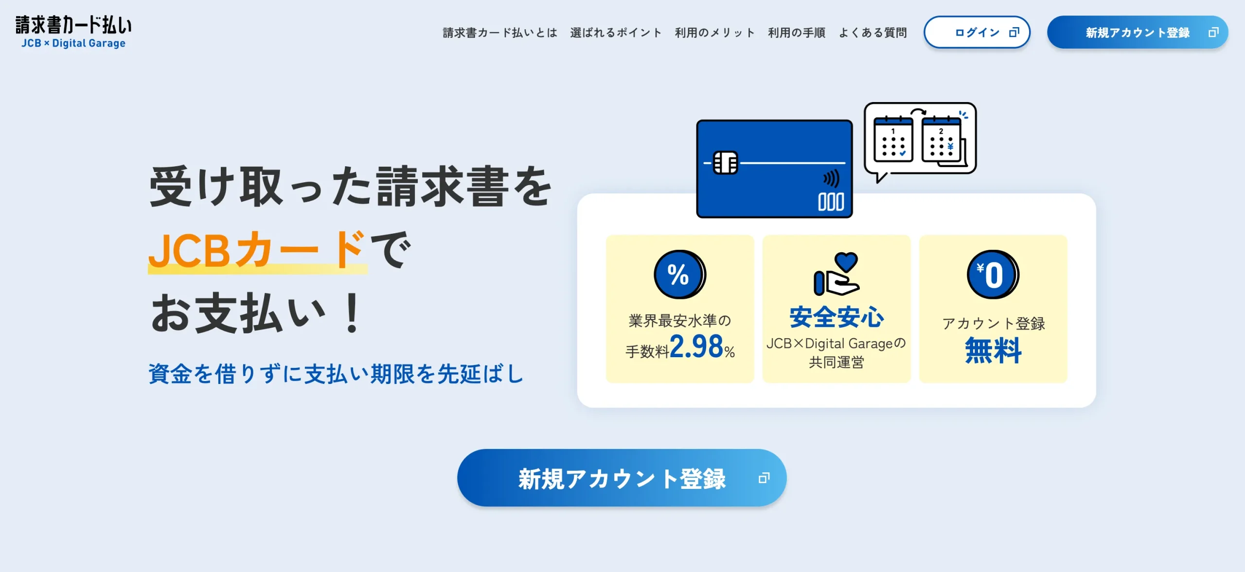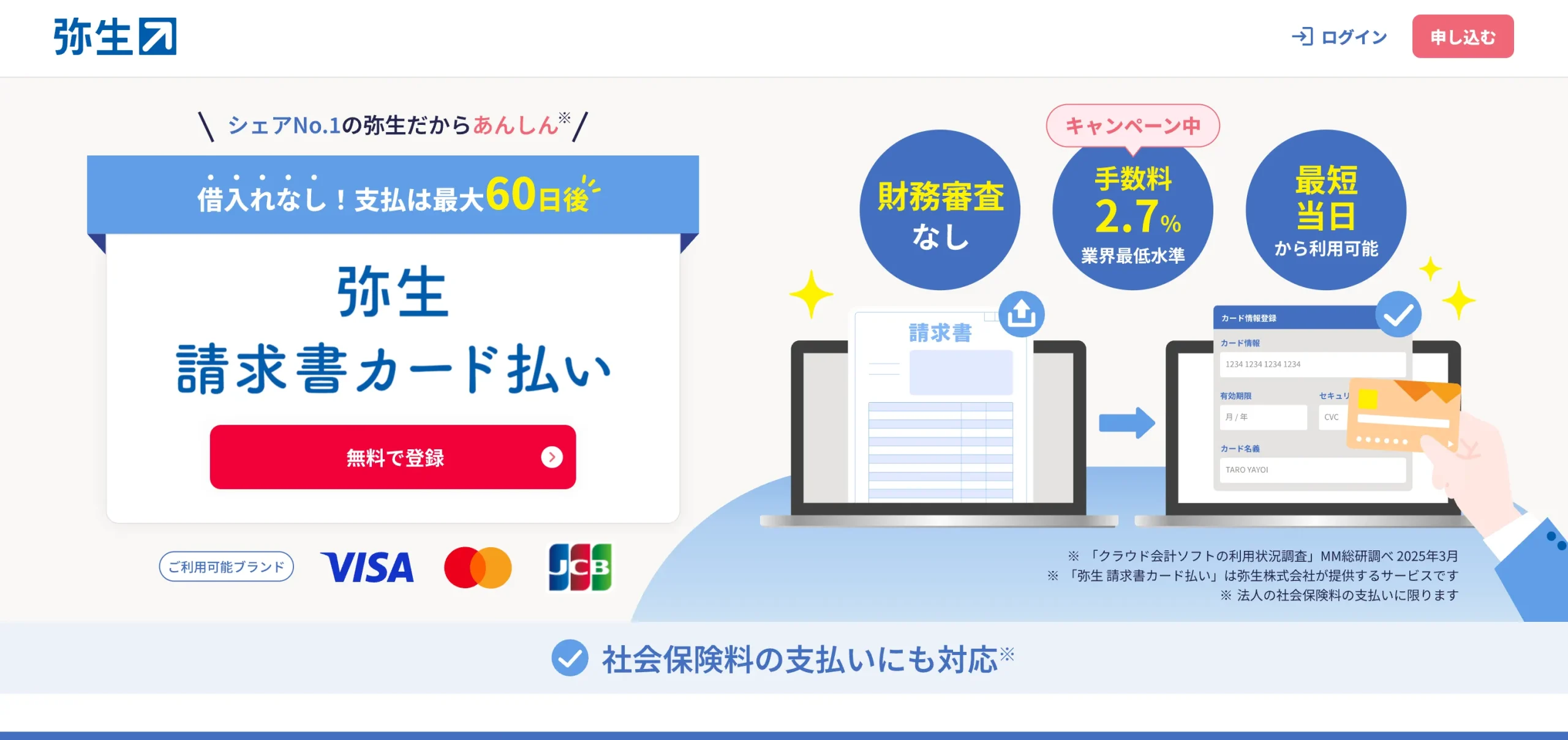 | 1. サービス登録 | 請求書カード払いサービスに無料登録 | 最短5分 |