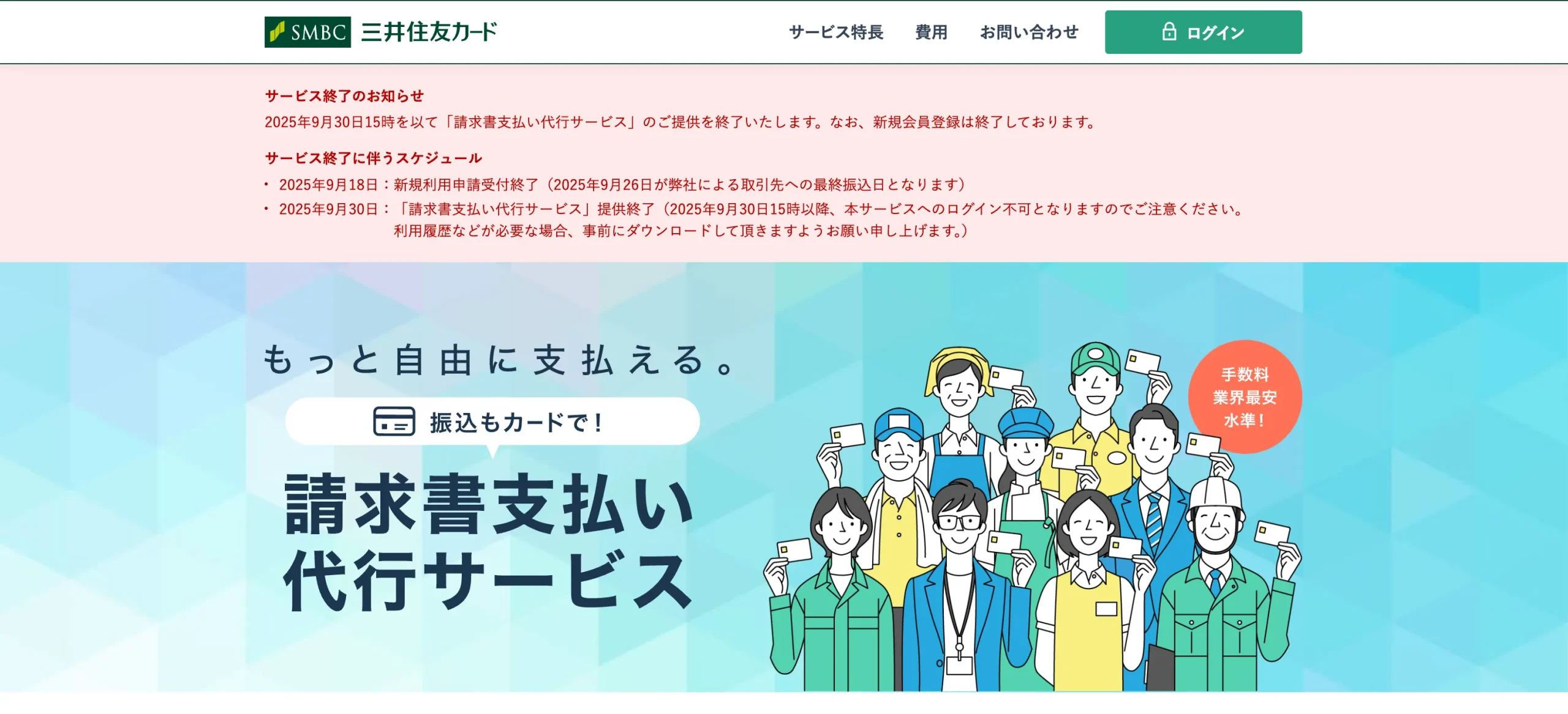 三井住友カード 請求書支払い代行サービス![]() 詳細を見る | 3% | (VISA) (Mastercard) | 法人・個人事業主 対応スピード 最短即日~3営業日 100万円利用の手数料 33,000円(税込) |